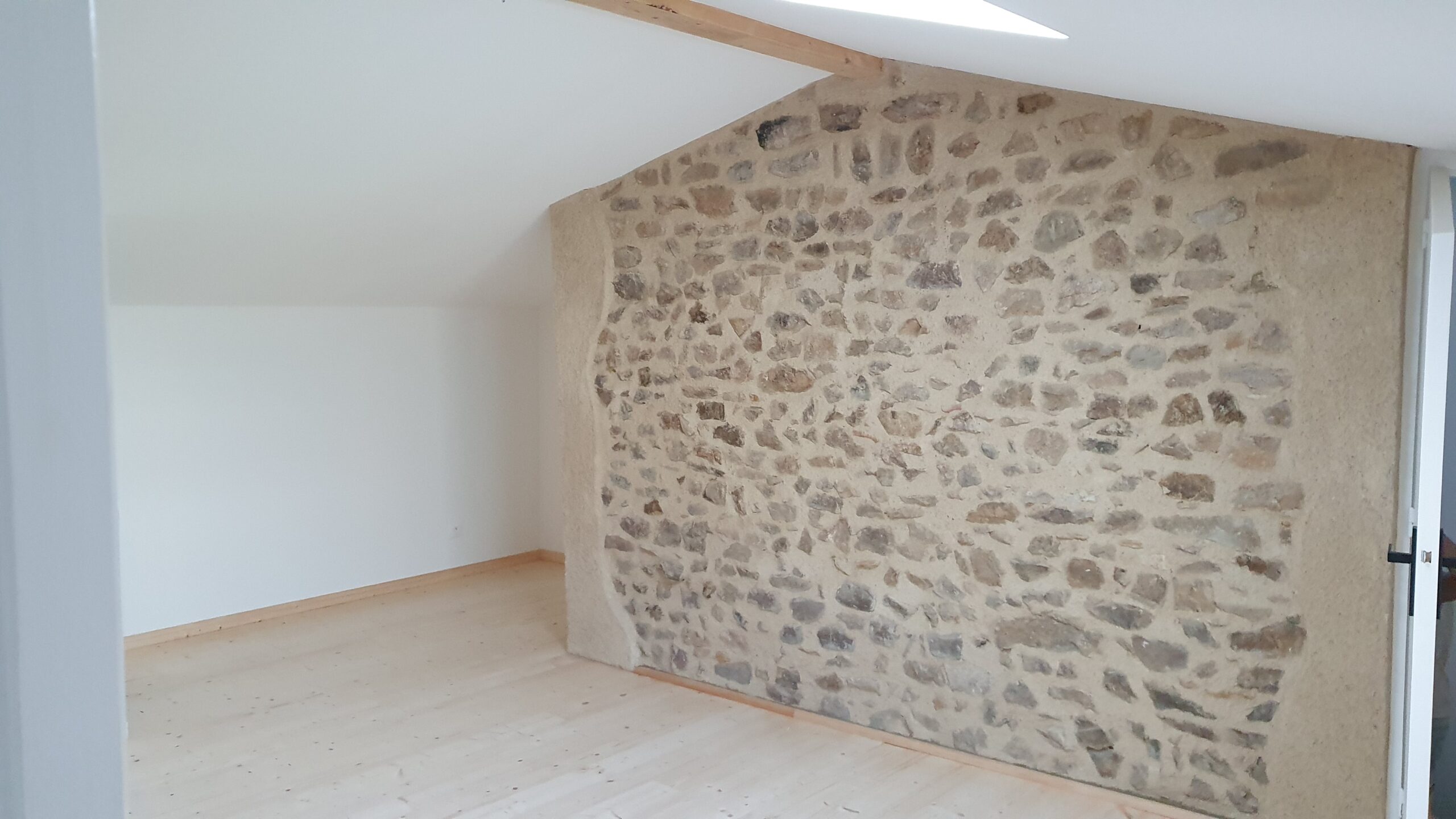 • Isolation extérieure façade pierre et ossature bois Nord et Sud